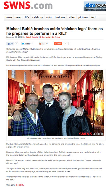 MICHAEL BUBLÉ gets Italian National Tartan kilt outfit in record time